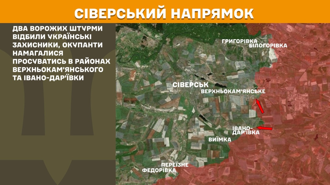 Два ворожих штурми відбили українські захисники на Сіверському напрямку, загарбники намагалися просуватись в районах Верхньокам’янського та Івано-Дар’ївки.