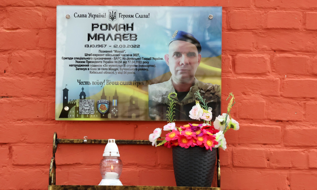 Штаб-сержант військової частини 3027 бригади спеціального призначення «БАРС» Національної гвардії України Роман Малаєв із позивним «Мамай» загинув 12 березня 2022 року в запеклих боях за село Мощун Бучанського району Київської області. Це село було одним із важливих форпостів захисту Києва від наступу загарбників.