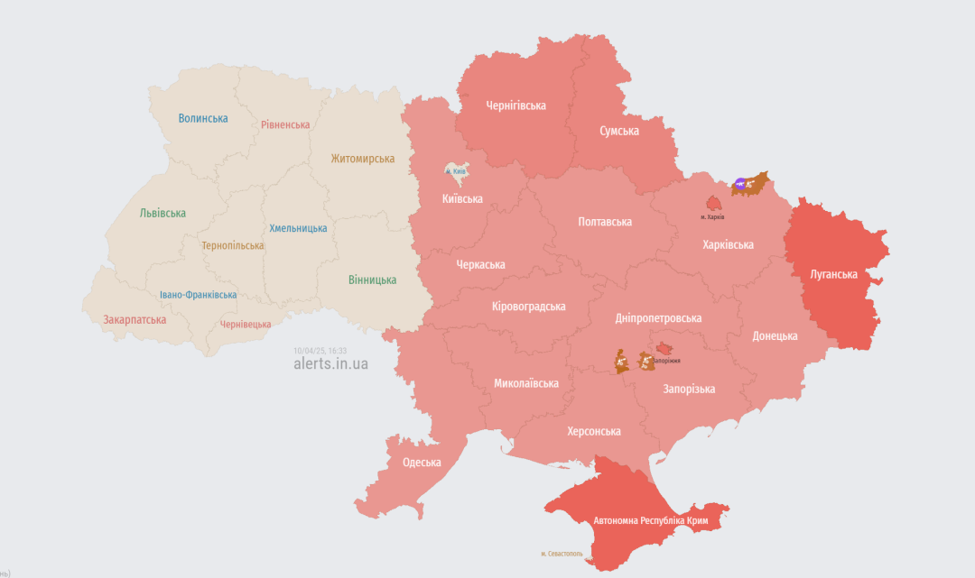 Про це свідчать дані Мапи тривог, передає Укрінформ.