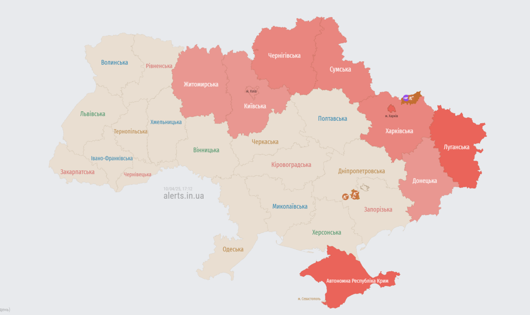 О 17:58 по Києву оголосили відбій загрози, у решті регіонів повітряна тривога залишилася.