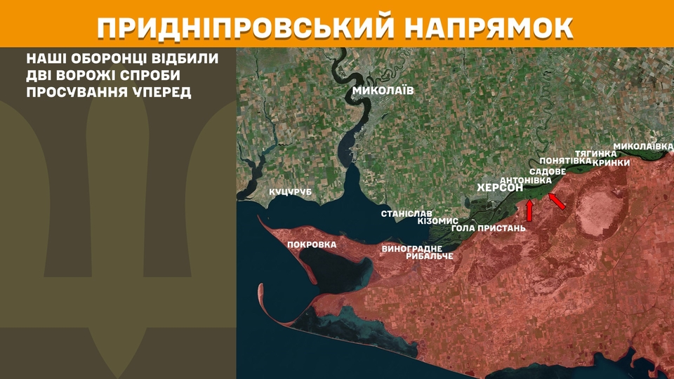 На Придніпровському напрямку Сили оборони відбили дві ворожі спроби просування уперед.