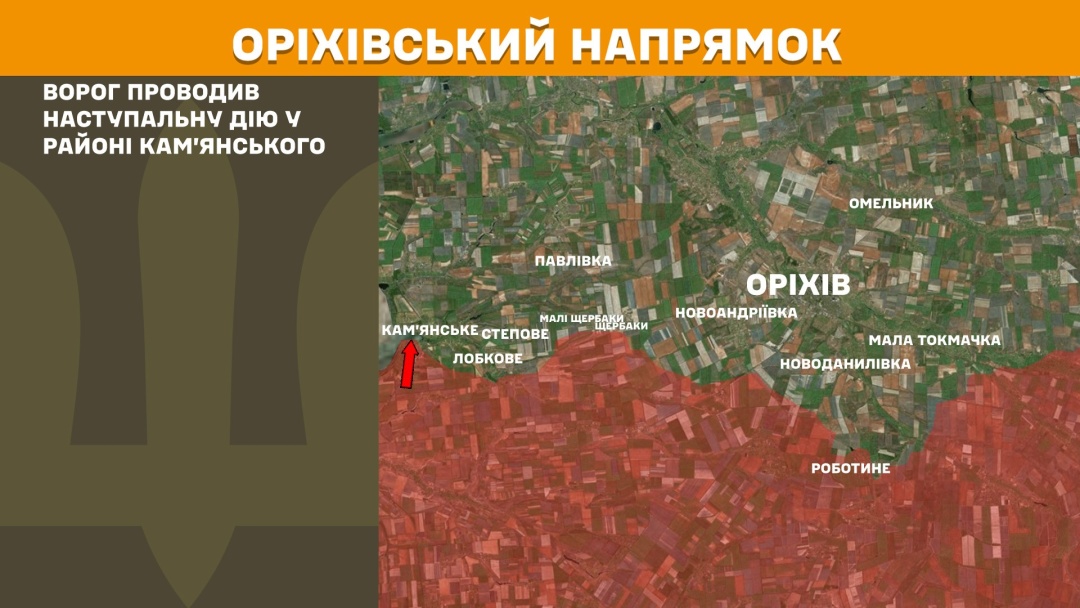 На Оріхівському напрямку ворог проводив наступальну дію у районі Кам’янського.