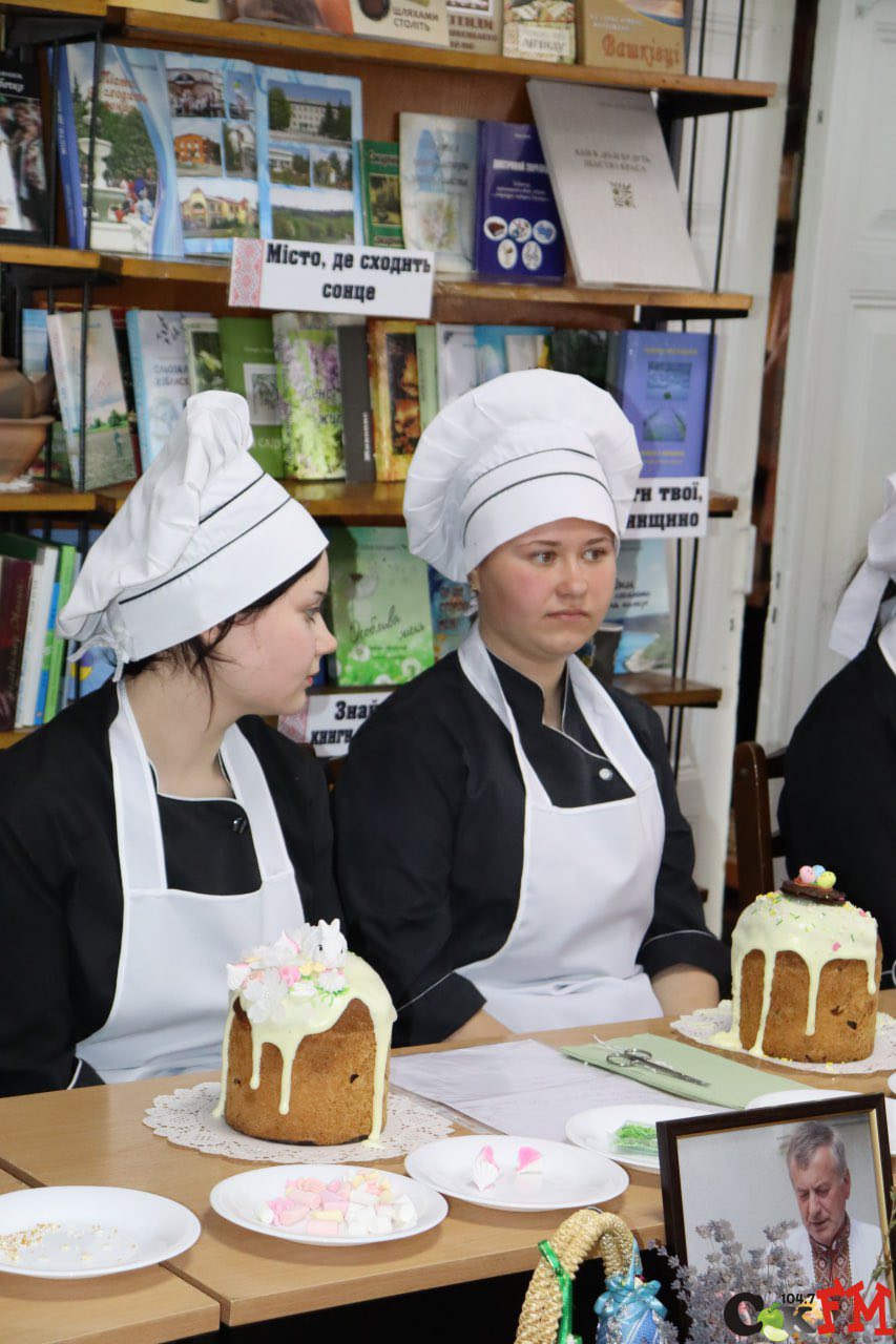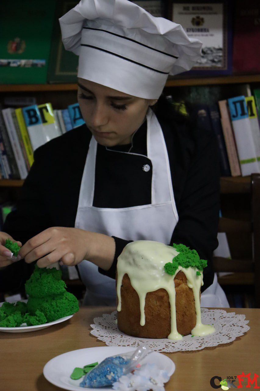 Своє вміння оздоблювати великодні паски передали здобувачі освіти гр.. №54, ІІ курсу (кухарі-кондитери): Вероніка Бурлачук, Анастасія Гонца, Анна Паращук, Марина Логодзінська, Віталіна Чорна разом із їхнім професійним наставником – майстром виробничого навчання Валентиною Петрівною Кушнір, яка досконало володіє навичками кухарської справи і чого вміло навчає своїх учнів по спеціальності «Кухар-кондитер».