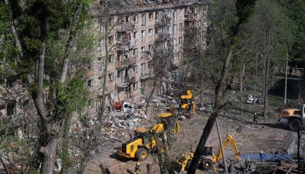 Вранці 25 квітня у Києві завершились пошуково-рятувальні роботи на місці ракетного удару по житловому будинку у Святошинському районі. Аварійно-відновлювальні роботи тривають. Проводиться розбирання пошкоджених будівельних конструкцій.