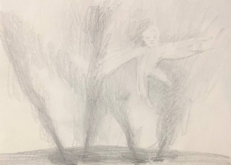 «Я намалювала дівчинку, яка, наче янгол, летить над будинками. Дівчинка летить над цим уродством світу. Перше моє сприйняття росіян було таким, ніби вони — монстри, які прийшли й борються з людьми», - казала художниця.