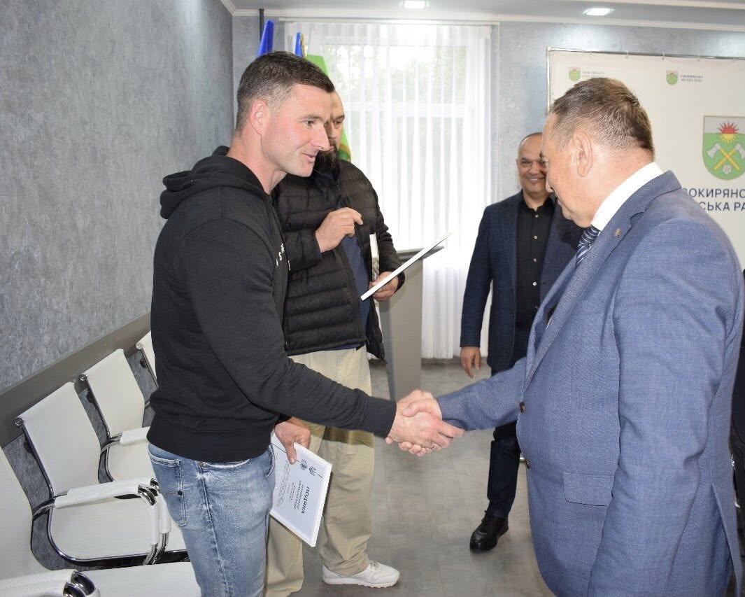 Під час сьогоднішньої зустрічі голова Чернівецької обласної ради Олексій Бойко, народний депутат України Валерій Божик та міський голова Василь Козак особисто подякували Миколі Бабюку та Дмитру Ловчому за їхню чуйність, мужність і небайдужість. Як символ вдячності їм було передано примірник книги та Подяки Чернівецької обласної ради.
