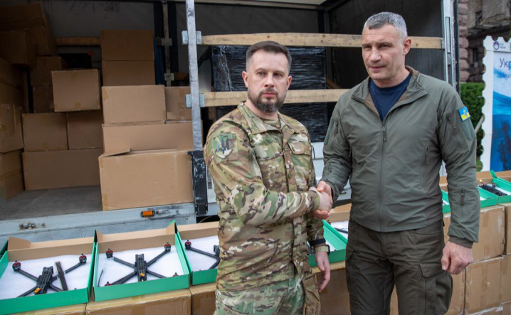 Лише у квітні мер Києва Віталій Кличко привіз бійцям понад 3600 FPV-дронів та різне спорядження, придбане за кошти столичного бюджету
