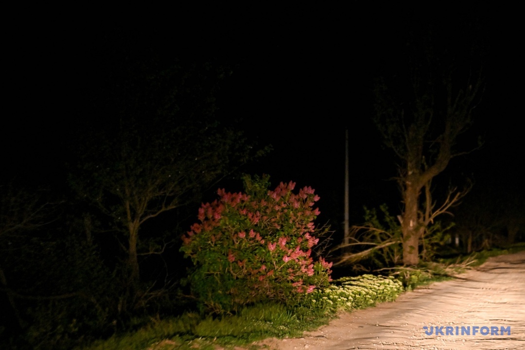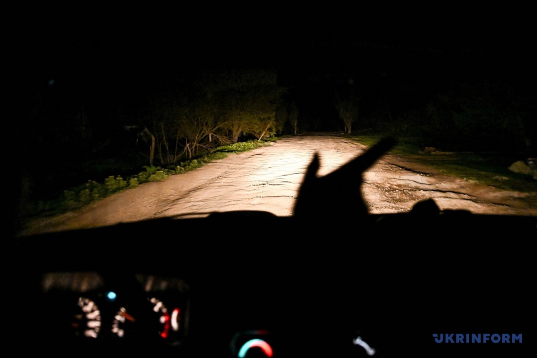 Дорога до будинку «Баби Яги» займає хвилин сорок. Виїжджаємо вночі. Спершу світло фар, спотикаючись вибоїнами, ковзає дорогами розбитих прифронтових сіл. Нудну картину розбавляють яскраві кущі бузку. Далі мчимо пахучим степом, де замість сільського бузку періодично виринає стрункий очерет. А потім водій запускає РЕБ і вимикає фари… Зовсім. Під Торецьком я заїжджав на позицію, коли водій крутив кермо, а поруч штурман із приладом нічного бачення вказував йому дорогу. Але щоб їхати навпомацки – таке вперше.