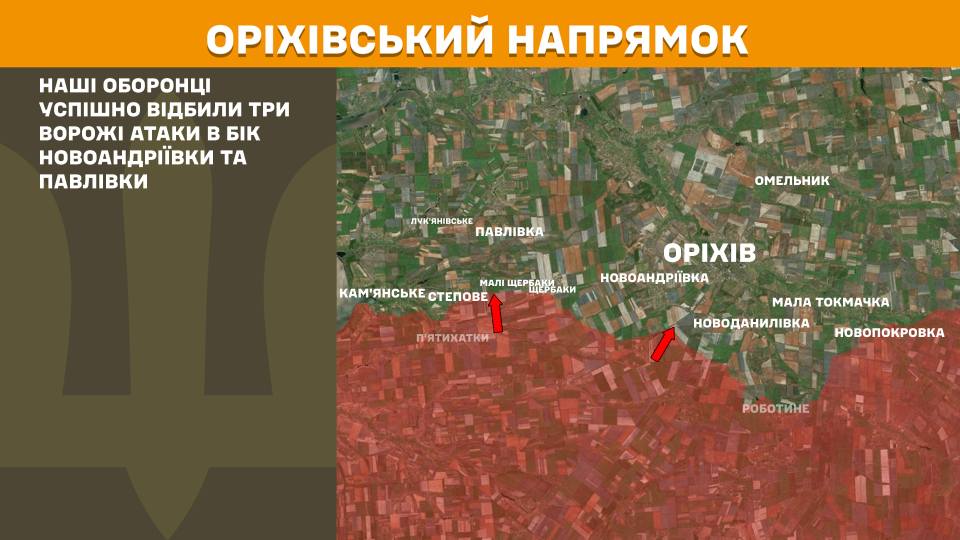 На Оріхівському напрямку наші оборонці успішно відбили три ворожі атаки в бік Новоандріївки та Павлівки.