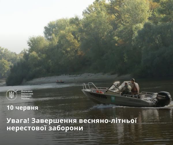 Державна екологічна інспекція України інформує: 10 червня завершується нерестова заборона на вилов водних біоресурсів у озерах, ставках, водосховищах