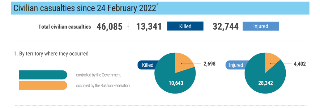 У звіті зазначається, що 97% жертв серед цивільного населення зафіксовано на територіях, підконтрольних уряду України.