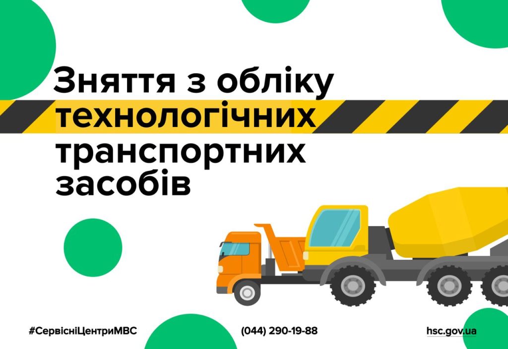 Звертаємо увагу, що технологічні транспортні засоби, які вивозяться за кордон, знімаються з обліку виключно після проведення експертного дослідження ідентифікаційних номерів складових частин (вузлів та агрегатів) технологічного транспортного засобу. У свідоцтві про реєстрацію або на копії реєстраційної картки, що додається до свідоцтва про реєстрацію технологічних транспортних засобів, знятих з обліку у зв’язку із вивезенням за кордон, робиться запис: «Знято з обліку для вивезення за кордон». Відомості про зняті з обліку технологічні транспортні засоби вносяться до Єдиного державного реєстру транспортних засобів.