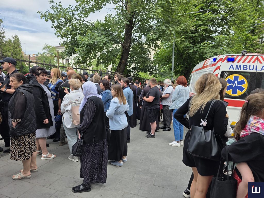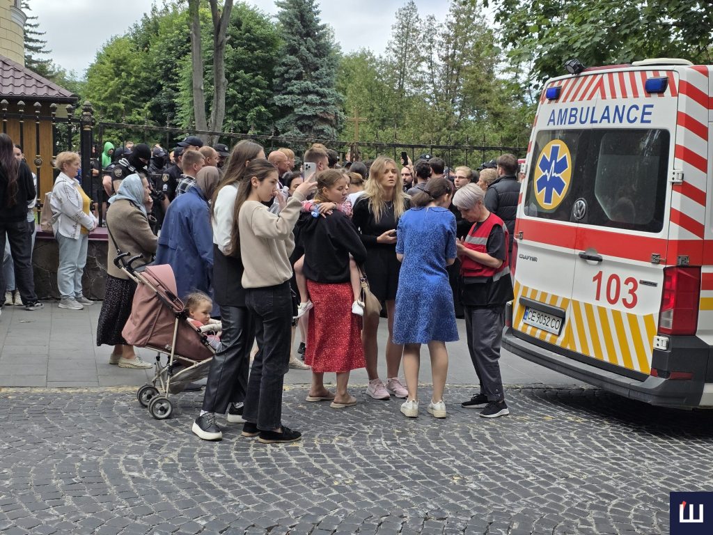 По всьому периметру храм охороняють працівники поліції. Натомість парафіяни УПЦ перекрили вулицю Головну.