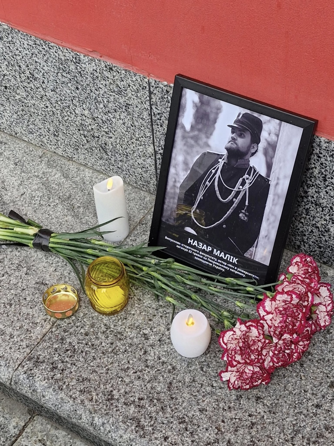 У червоному корпусі КНУ облаштували імпровізоване місце пам'яті Назара Маліка.