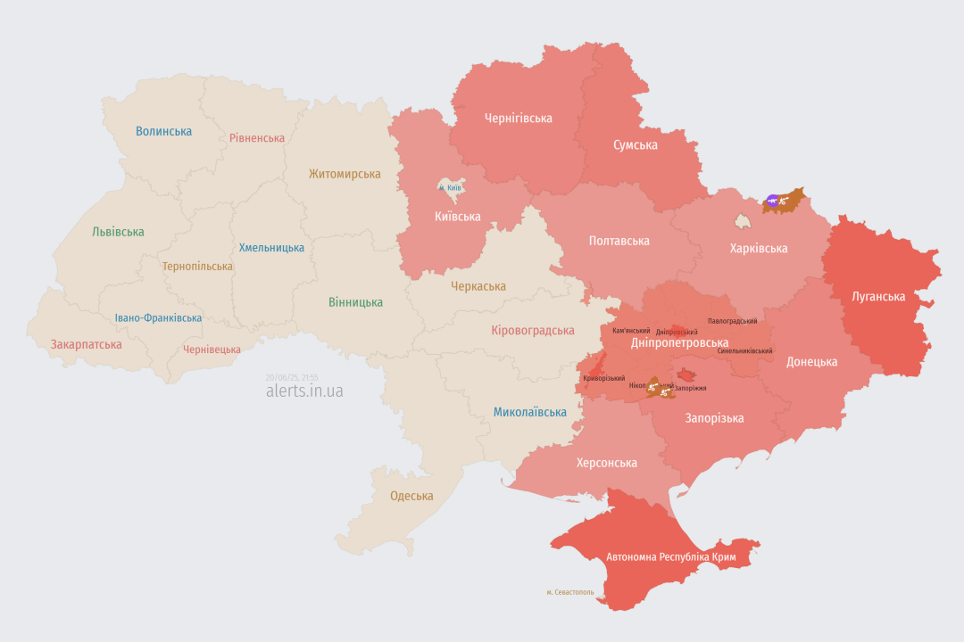 Про це повідомляє Укрінформ із посиланням на мапу повітряних тривог.