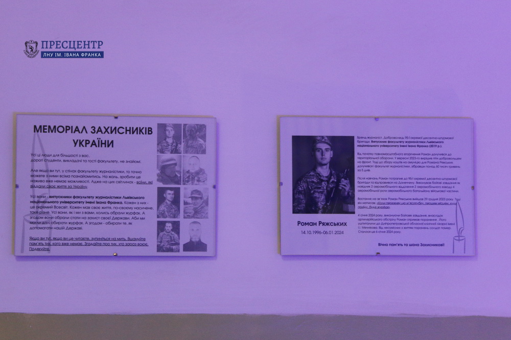 «Захищаючи Україну від російських окупантів, загинув випускник факультету журналістики Львівського національного університету імені Івана Франка Роман Ряжських. Героєві було 27 років», – повідомив про смерть Героя факультет.