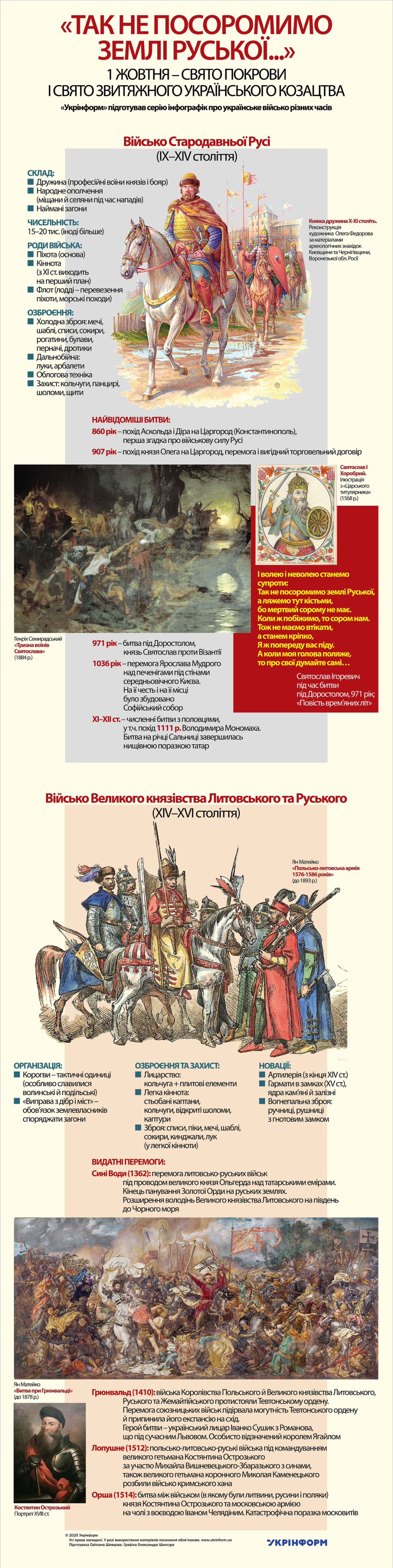 1 жовтня – свято Покрови і свято звитяжного українського козацтва. «Укрінформ» підготував серію інфографік про українське військо різних часів