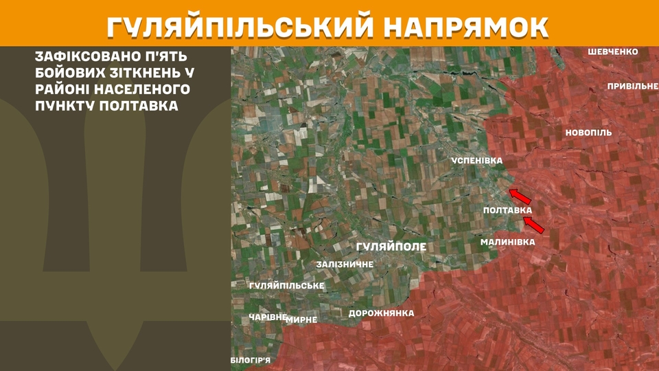 На Гуляйпільському напрямку зафіксовані п’ять бойових зіткнень у районі Полтавки.