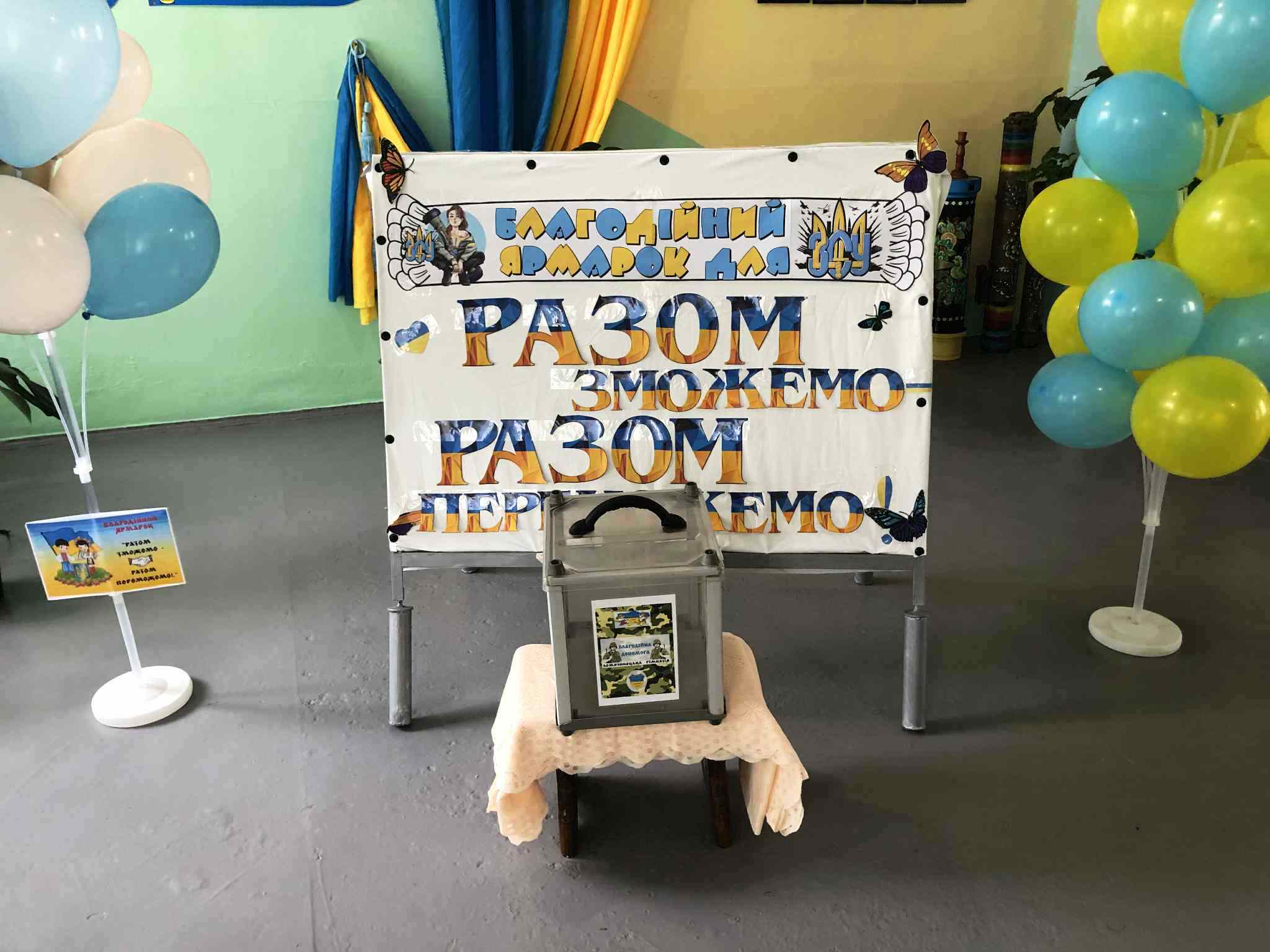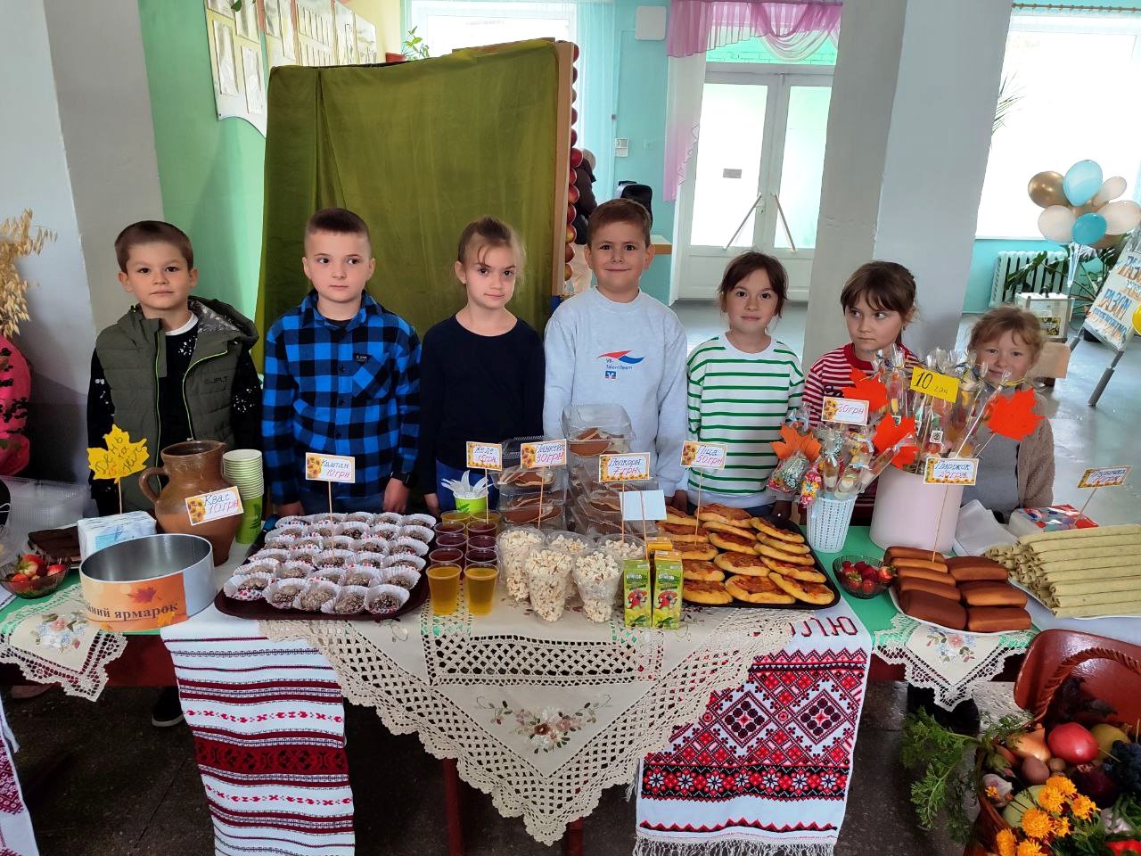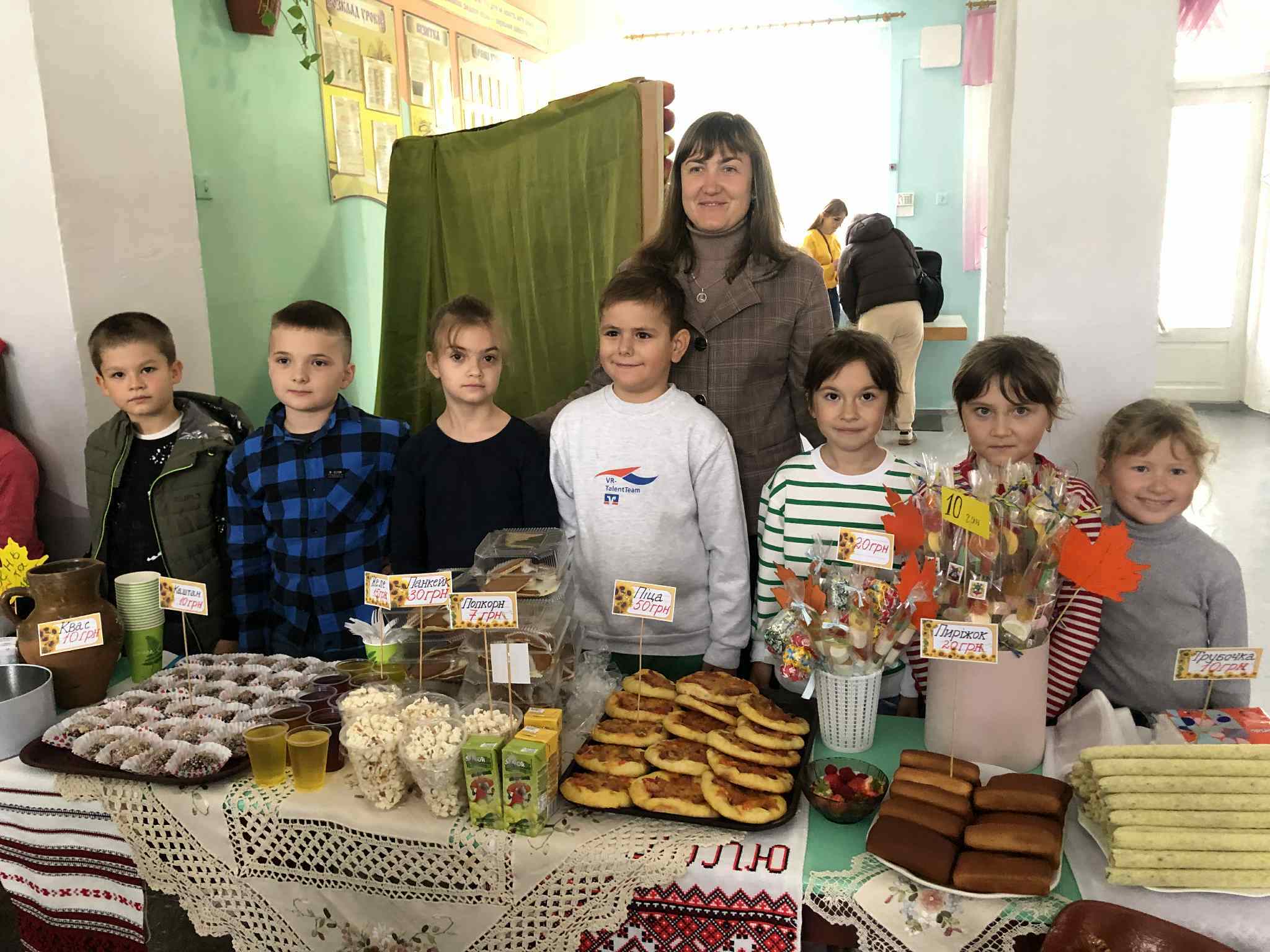 У приміщенні гімназії, для відвідувачів ярмарку, класні колективи презентували різноманітні домашні смаколики. Також організували лотерею та благодійну фотосесію.