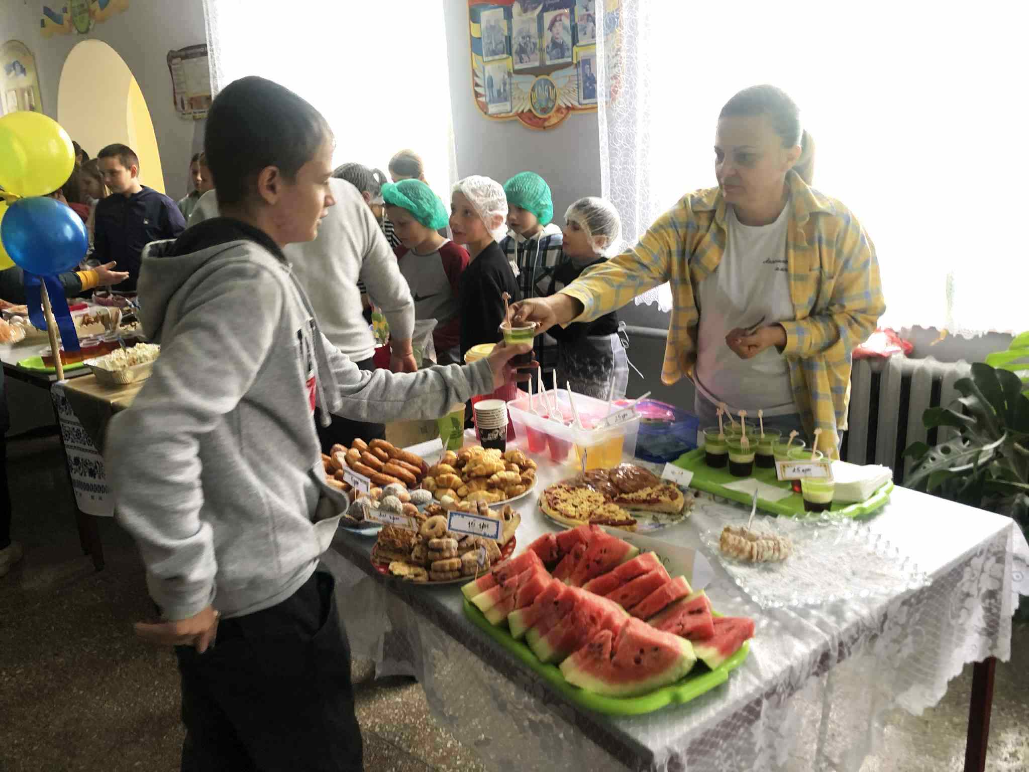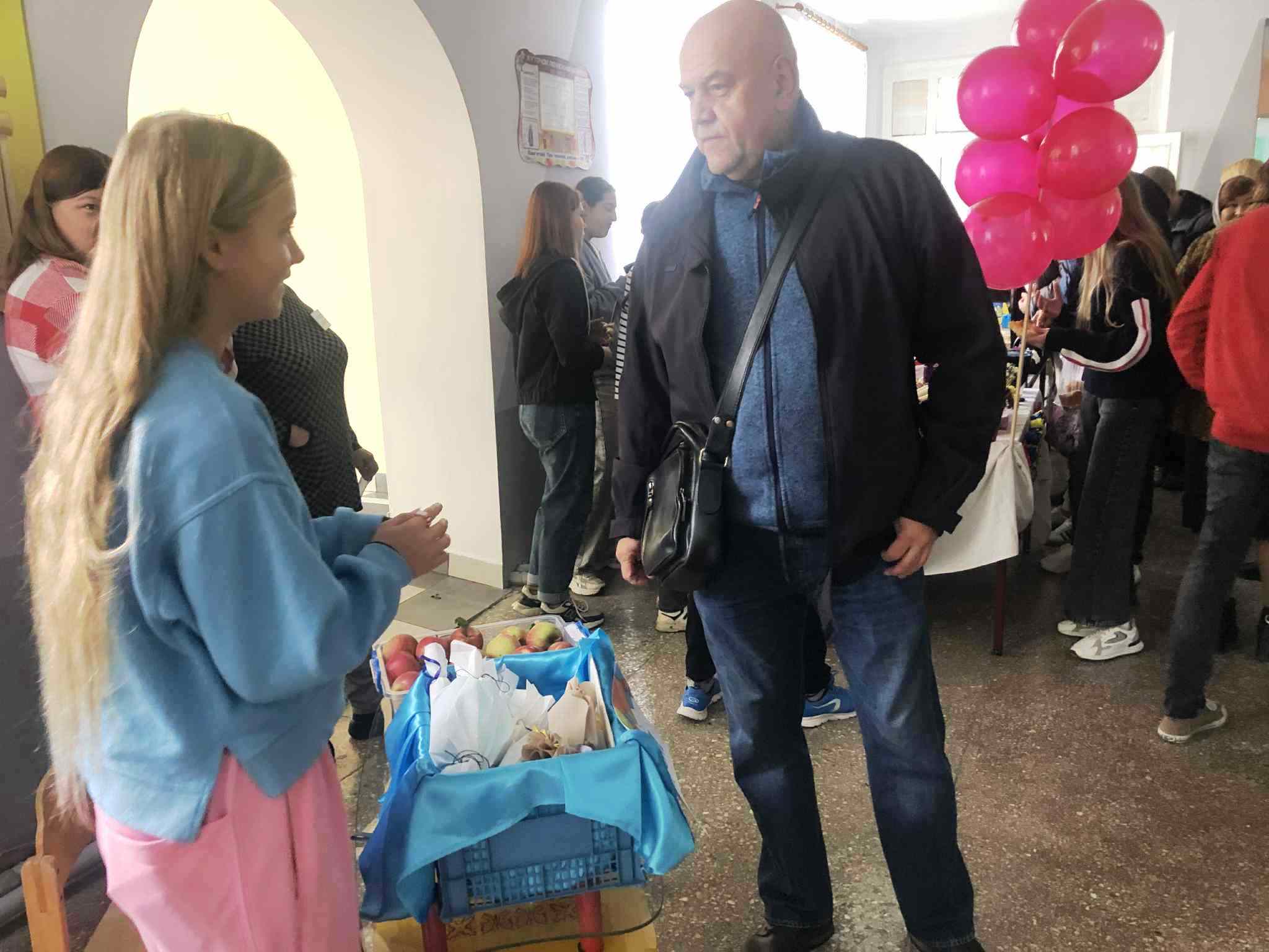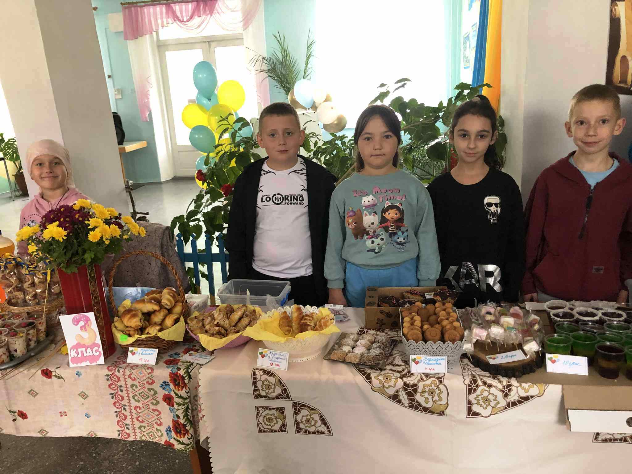 У приміщенні гімназії, для відвідувачів ярмарку, класні колективи презентували різноманітні домашні смаколики. Також організували лотерею та благодійну фотосесію.