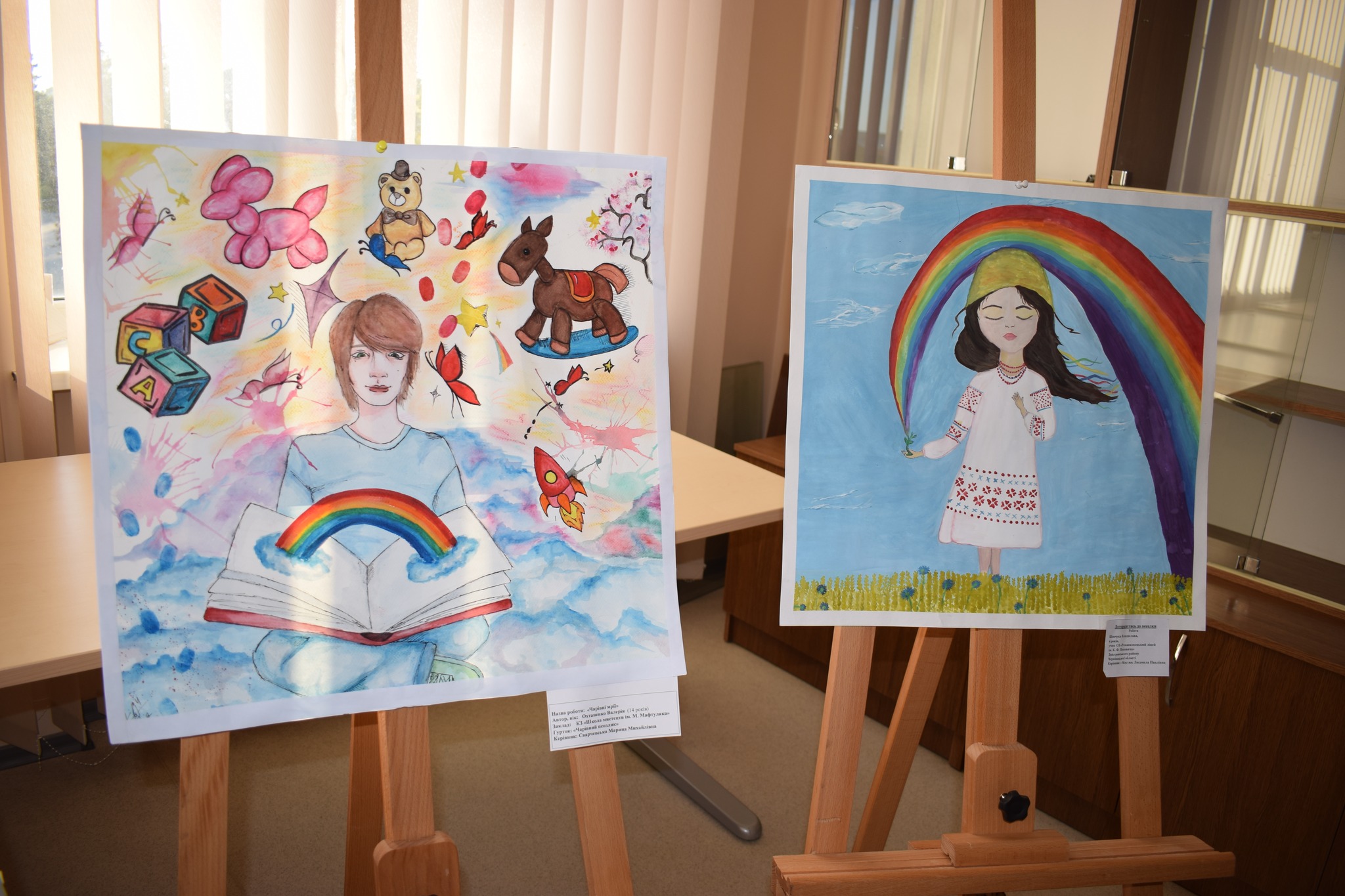Роботи виконані у різних техніках образотворчого мистецтва — живопис, графіка, батик, — і кожна з них передає неповторне бачення дитиною навколишнього світу.