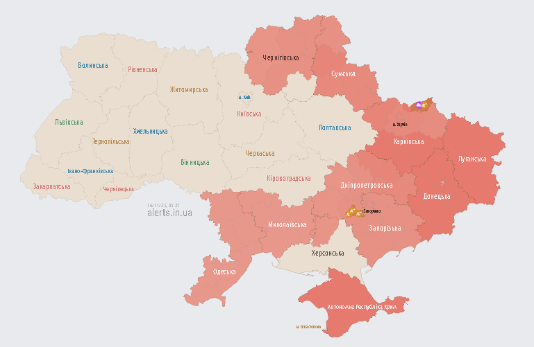 У  низці областей України оголошували повітряну тривогу. Є загроза застосування балістики.