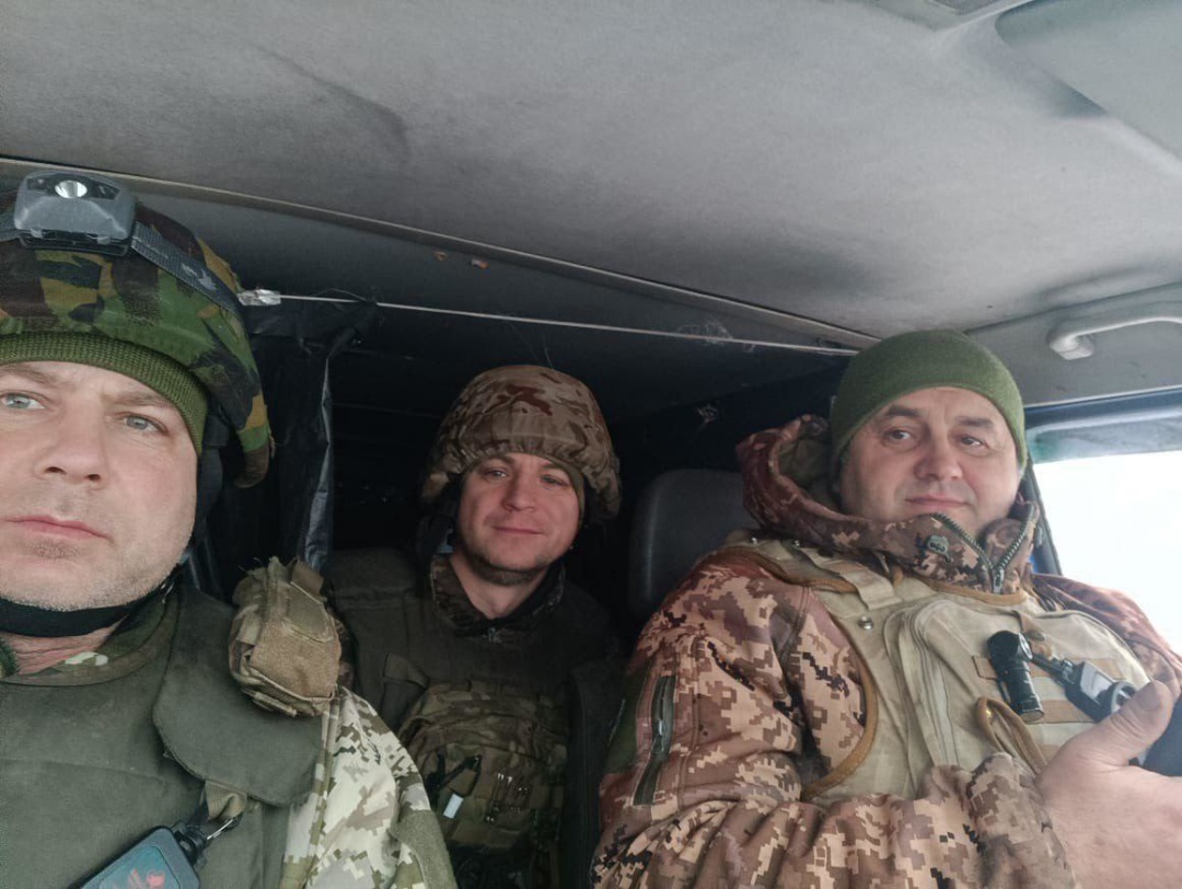 Володимир із дружиною Тетяною та командиром медичної роти 30-ї бригади Олегом Довганем