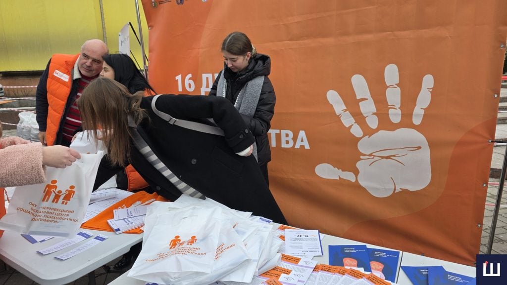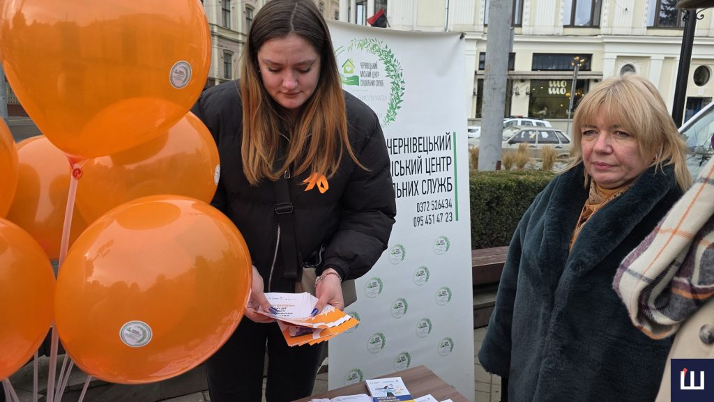 На Центральній площі у Чернівцях сьогодні, 25 листопада, відбулася просвітницька акція «Зупинимо насильство разом». Її організували за участю представників організацій, які здійснюють заходи у сфері запобігання та протидії домашньому насильству та/або насильству за ознакою статі у Чернівецькій області. Захід провели в межах Всеукраїнської акції «16 днів проти насильства».