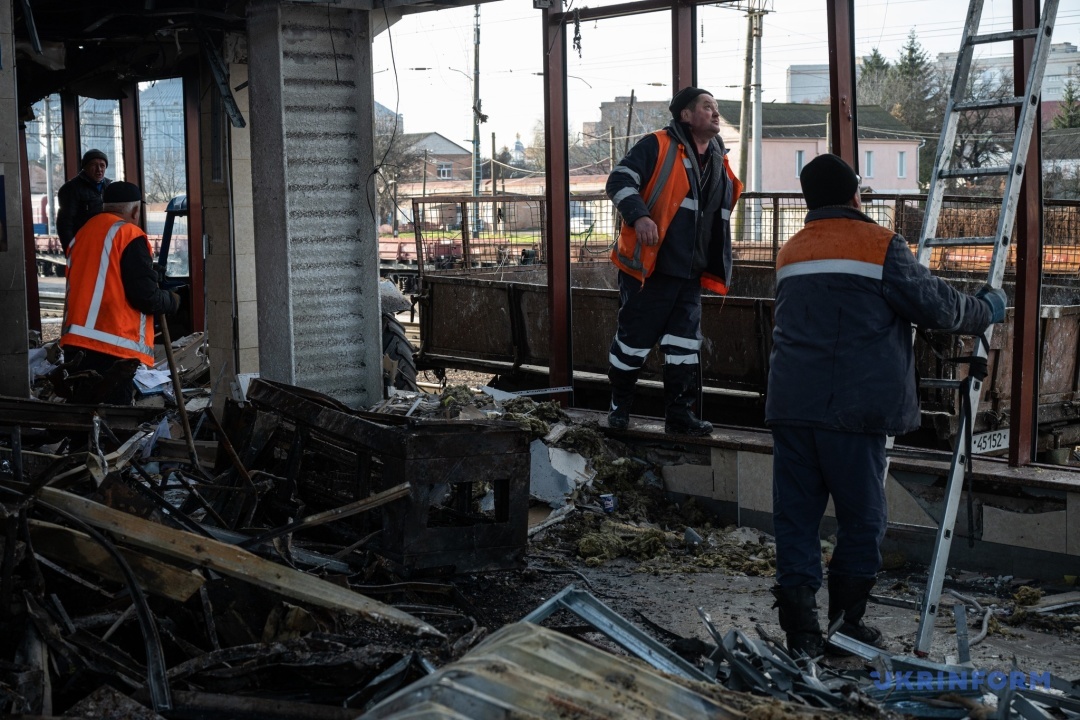 У ніч проти 6 грудня російські війська завдали масованого удару по Фастову на Київщині, унаслідок чого постраждала залізнична інфраструктура міста. Фото руйнацій тоді розлетілися мережею, а залізничникам довелося коригувати рухи приміських поїздів. Попри значні руйнування, робота на залізниці поступово відновлюється: співробітники депо розчищають територію, пасажирів різними способами інформують про зміни розкладу, а біля вокзалу працюють гуманітарні організації. У компанії «Укрзалізниця» уже обговорюють можливість будівництва нового вокзалу, який відповідатиме сучасним потребам жителів міста і пасажирів.