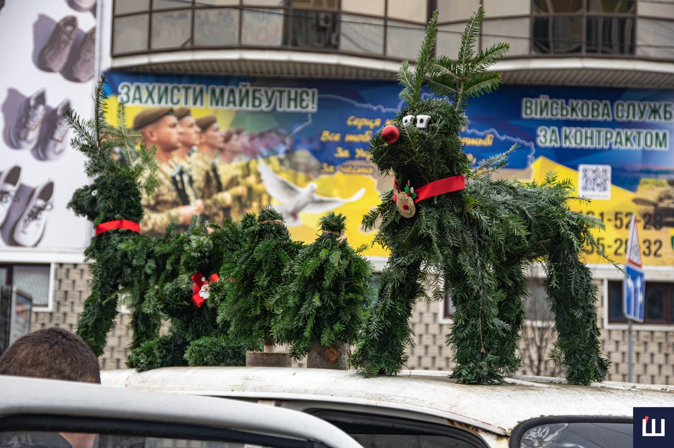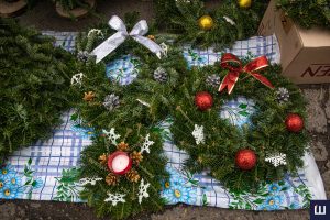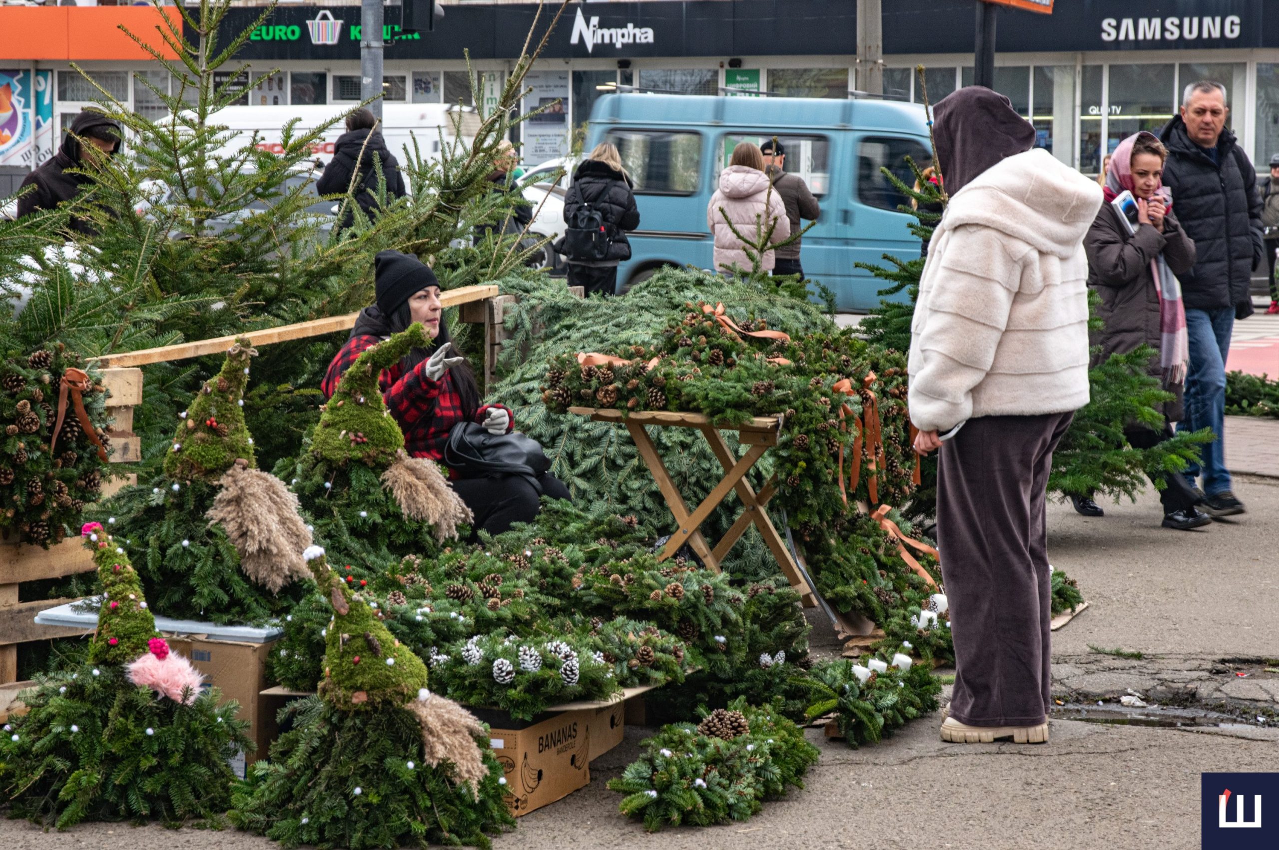 На проспекті Незалежності, крім ялинок, ще продають новорічні прикраси та вироби з хвої.