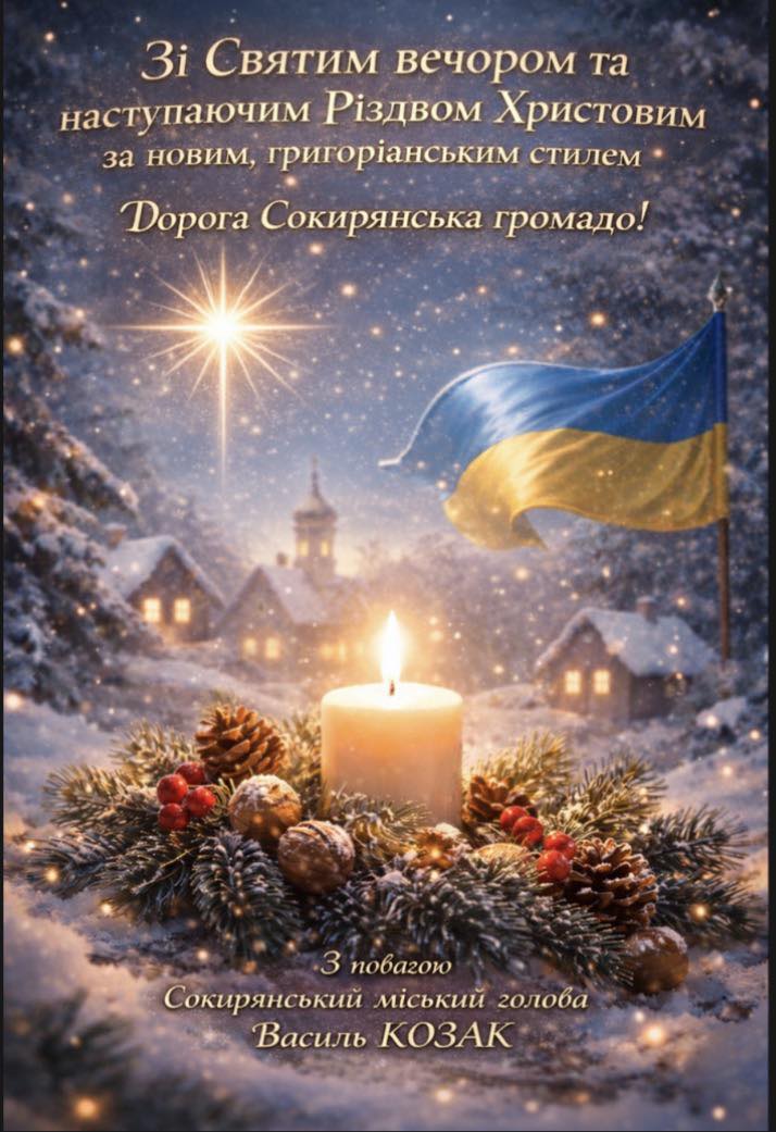 Нехай Вифлеємська зоря засяє над кожною домівкою, принесе мир, злагоду й тепло, а різдвяна коляда об’єднає нас у спільній молитві за життя, перемогу та щасливе майбутнє наших дітей.