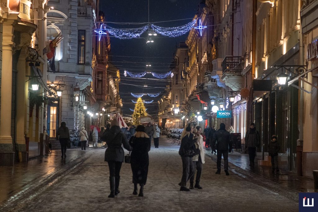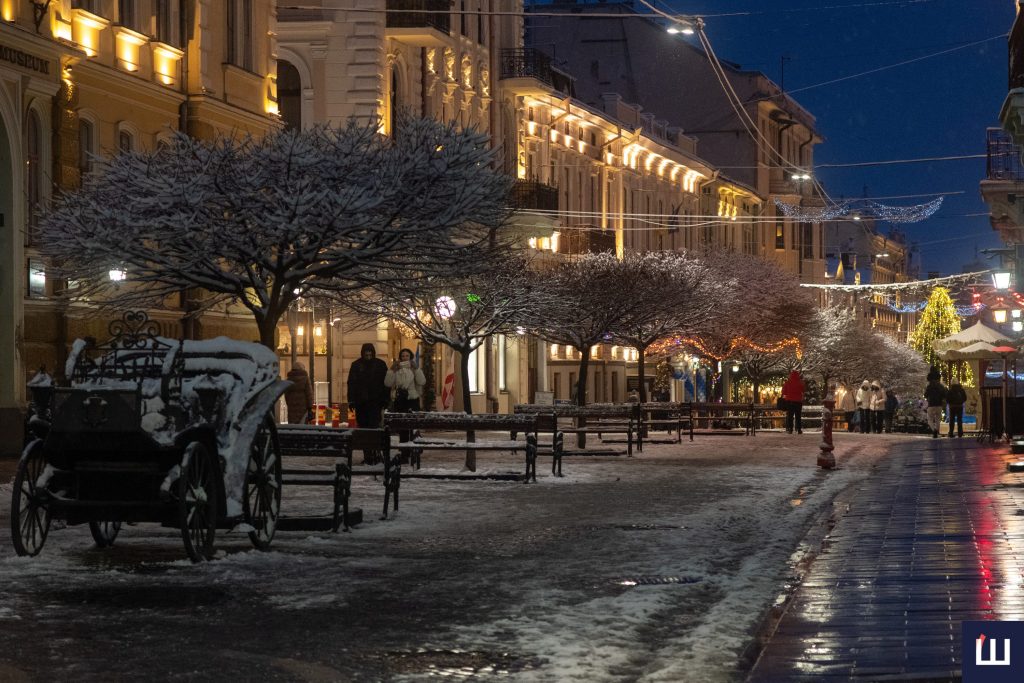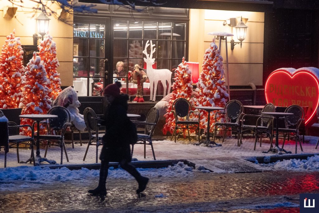 Усюди панує атмосфера свята: пахнуть хвоєю прикрашені ялинки, горять яскраві вогники, блимають гірлянди, а ще випав сніг. Святкову атмосферу міста зазнимкував фотограф «Шпальти».