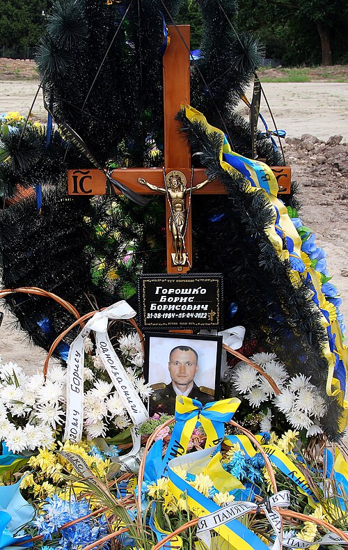 21 липня 2023 року Бориса Горошка перепоховали на Полі почесних поховань Личаківського кладовища у Львові. Церемонія прощання відбулась у середмісті Львова, у гарнізонному храмі Петра і Павла. У захисника залишилися дружина, донька, мати, брат та сестра.