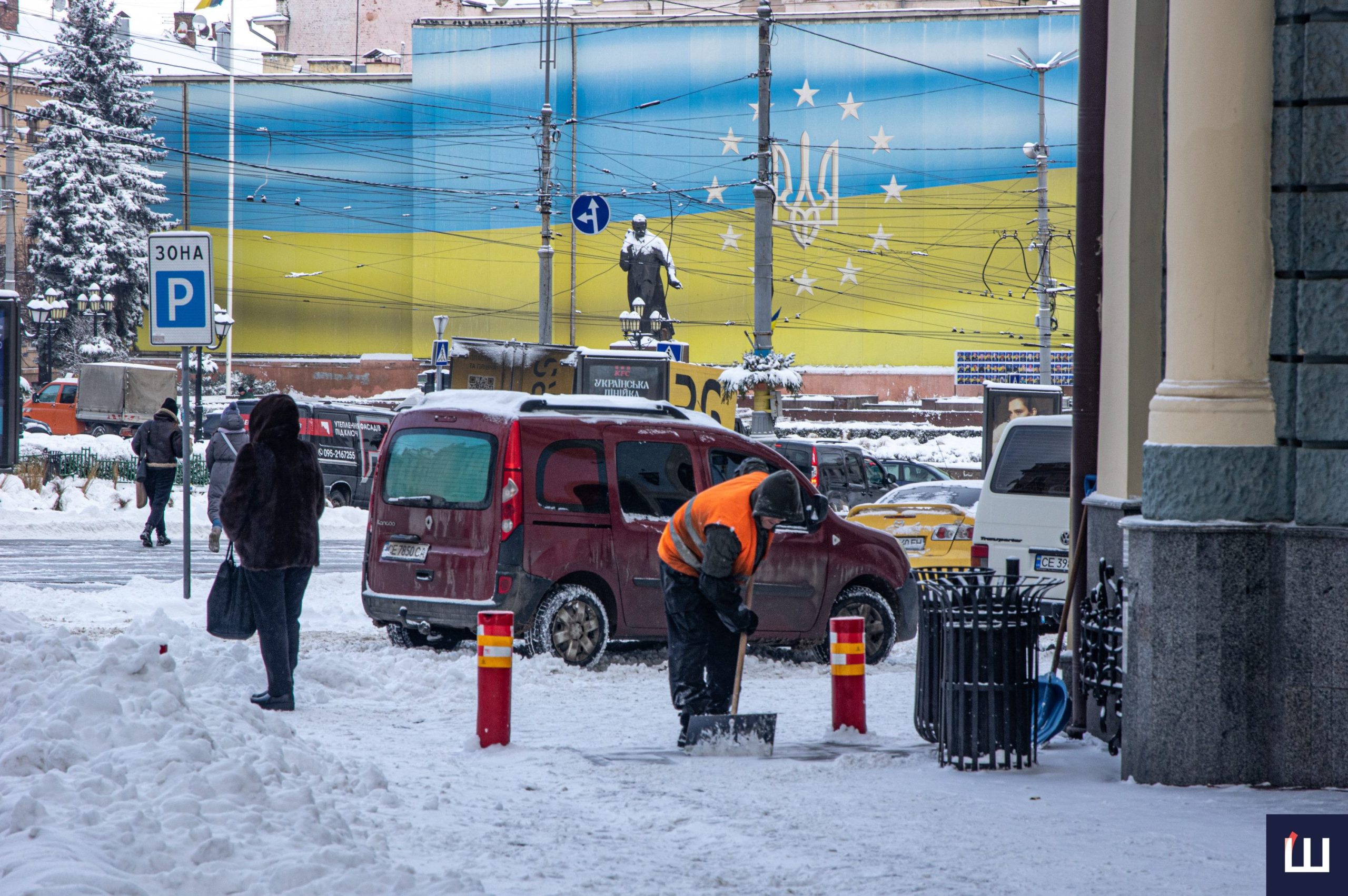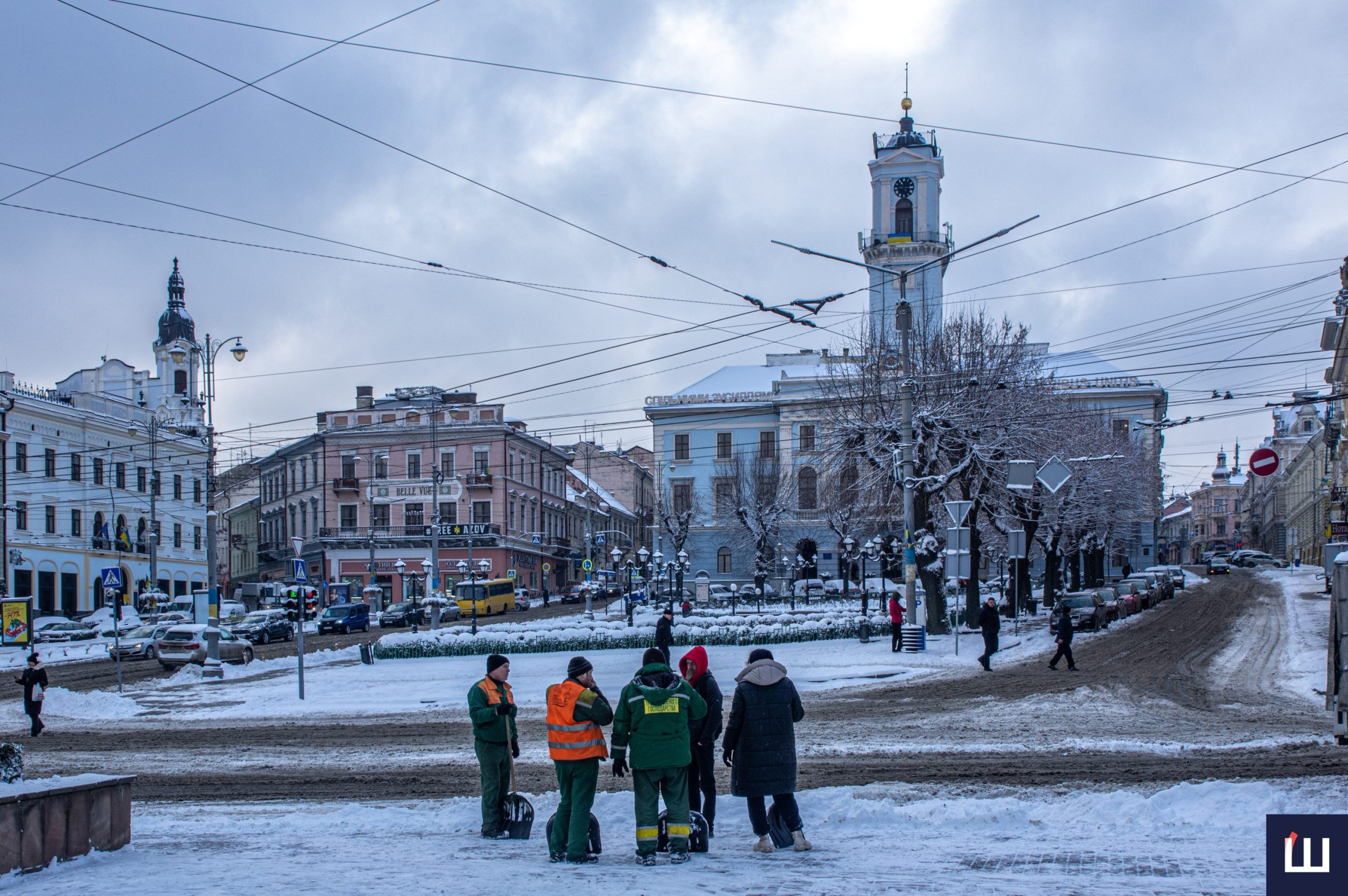 На вулицях міста багато людей. Життя триває, чернівчани поспішають у своїх справах, діти катаються на санчатах. Попри сніг і мороз, місто залишається активним і рухомим.