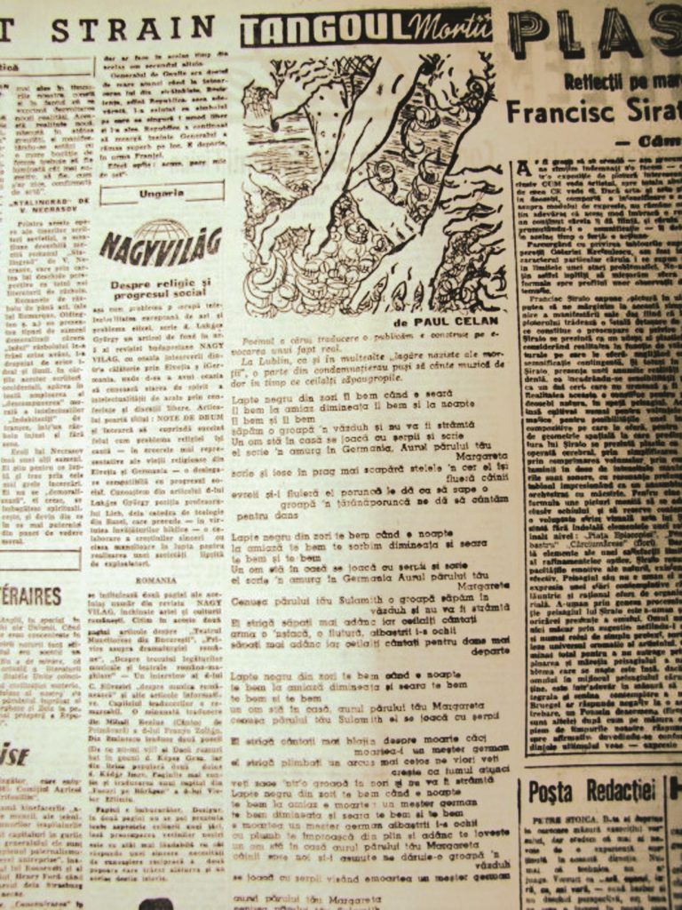 Перша публікація знаменитого вірша Целана «Танго смерті» у румунському журналі «Contemporanul», 1947 рік. Публікація “Observator Cultural” (Celan 100)