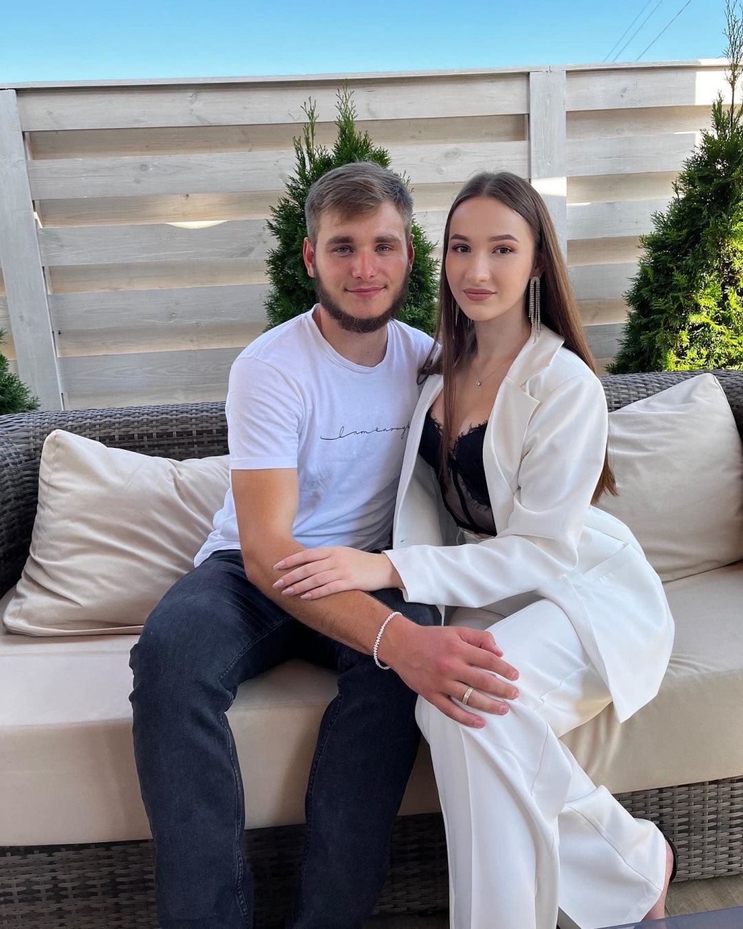 «Я обурилася. Що ще за хлопець? Як посмів узяти чужу річ! Почала телефонувати, щоб негайно повернув сувенір. Той жартівливо віднікувався, мовляв не віддам. Утім таки приніс… Уже настав вечір, похолодніло і він виніс нам плед. Так і познайомилися. Я довго не бачила Сергія, друг усе говорив, що він багато працює. Якось я прокоментувала його історію в Інстаграмі, і Сергій відповів, почали переписуватися. Потім запросив на каву. Поспілкувалися, а незабаром зустрілися знову в кав’ярні. Так і почали стрічатися, бо блакитноокий красень почав мені подобатися», – згадує романтичний період знайомства дружина.