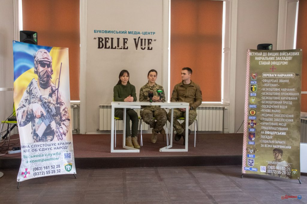 “Охочі звертаються до територіальних центрів комплектування і пишуть заяву на ім’я начальника, де вказують вуз та спеціальність, за якою бажають навчатися. За потреби, офіцери відділів рекрутингу та комплектування, враховуючи здібності, бажання, психологічно-моральні аспекти абітурієнтів, допомагають їм визначитися зі спеціальністю та навчальним закладом”, – пояснює підполковник, старший офіцер відділу рекрутингу Чернівецького обласного територіального центру комплектування та соціальної підтримки Ганна Барняк.
