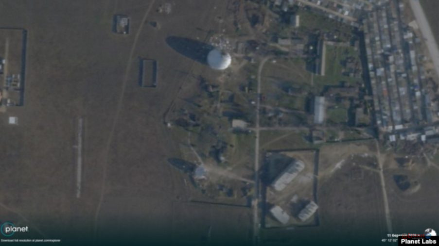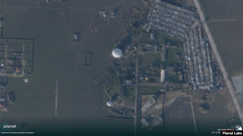 На супутникових знімках компанії Planet Labs зафіксували пошкодження радіопрозорих куполів російських військових радіолокаційних систем поблизу села Уютне під Євпаторією.