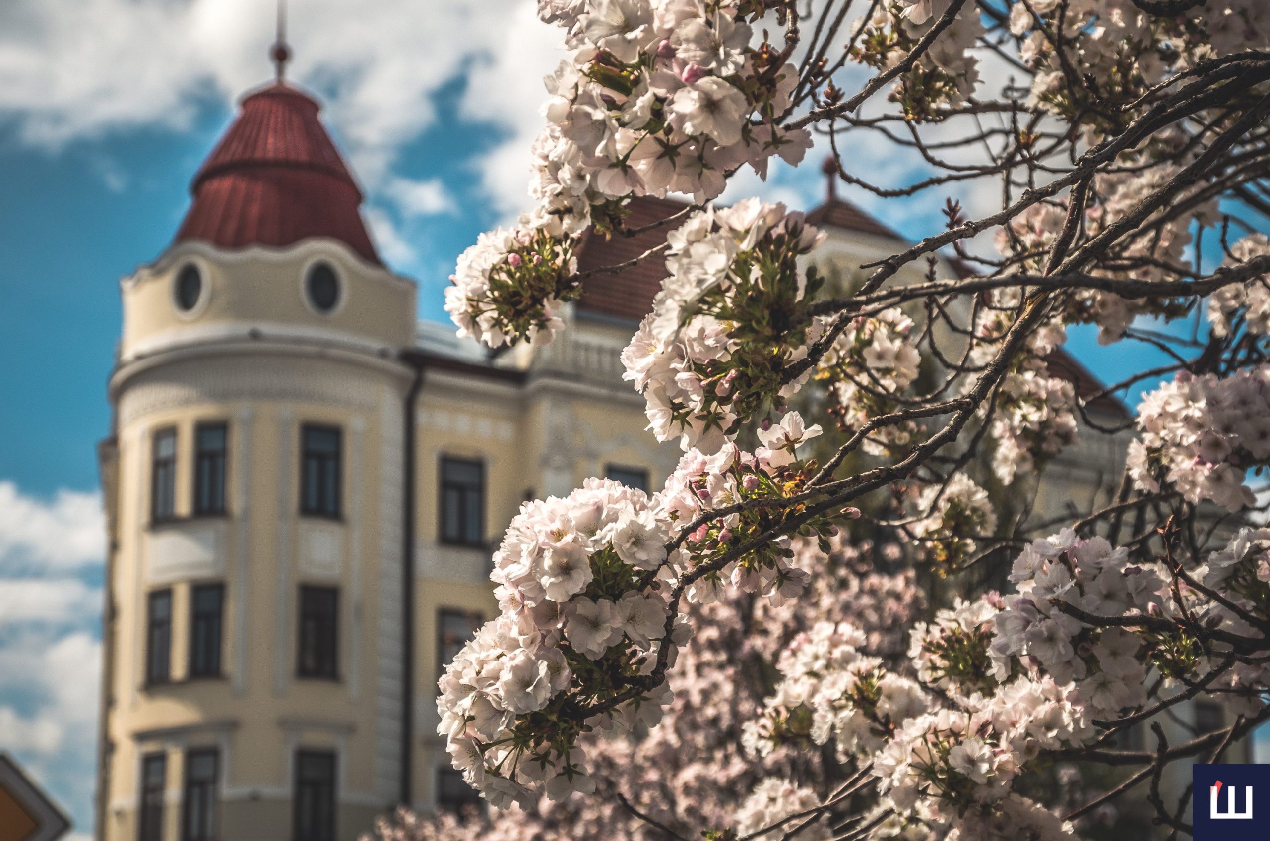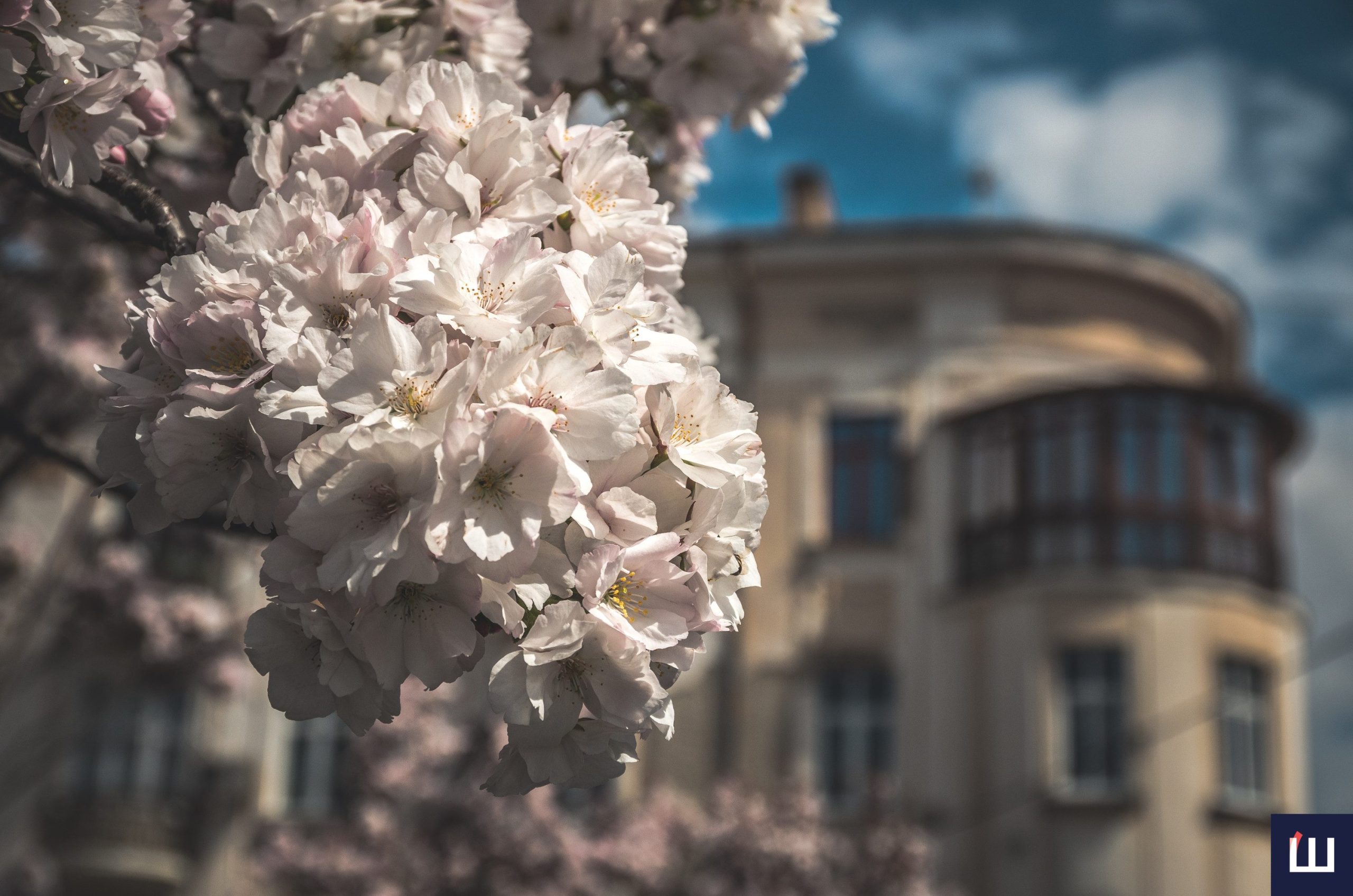 Сакури розквітли на площі Філармонії у Чернівцях: атмосферна локація у місті. Фото