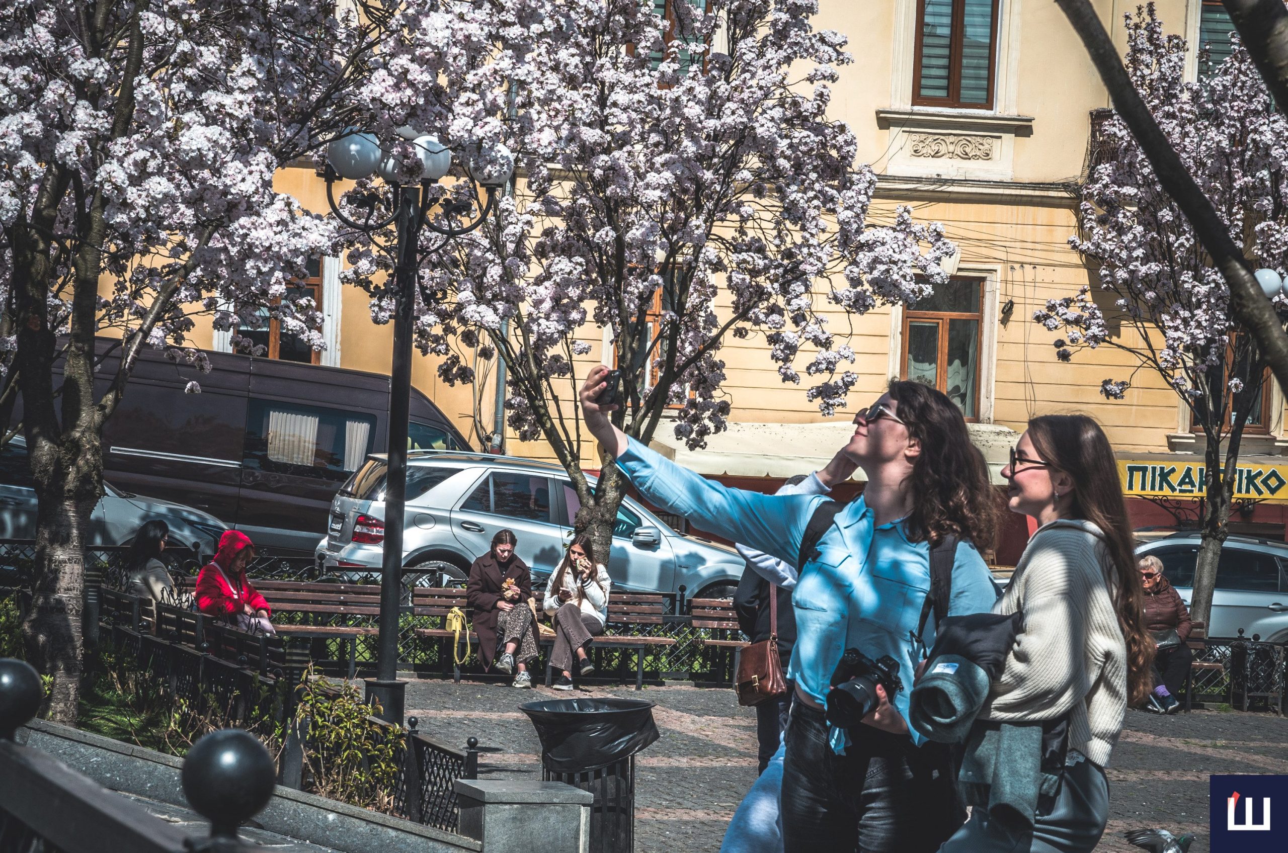 Цвітіння сакур традиційно триває недовго, тож чернівчани поспішають насолодитися цією красою, поки пелюстки ще тримаються на гілках.