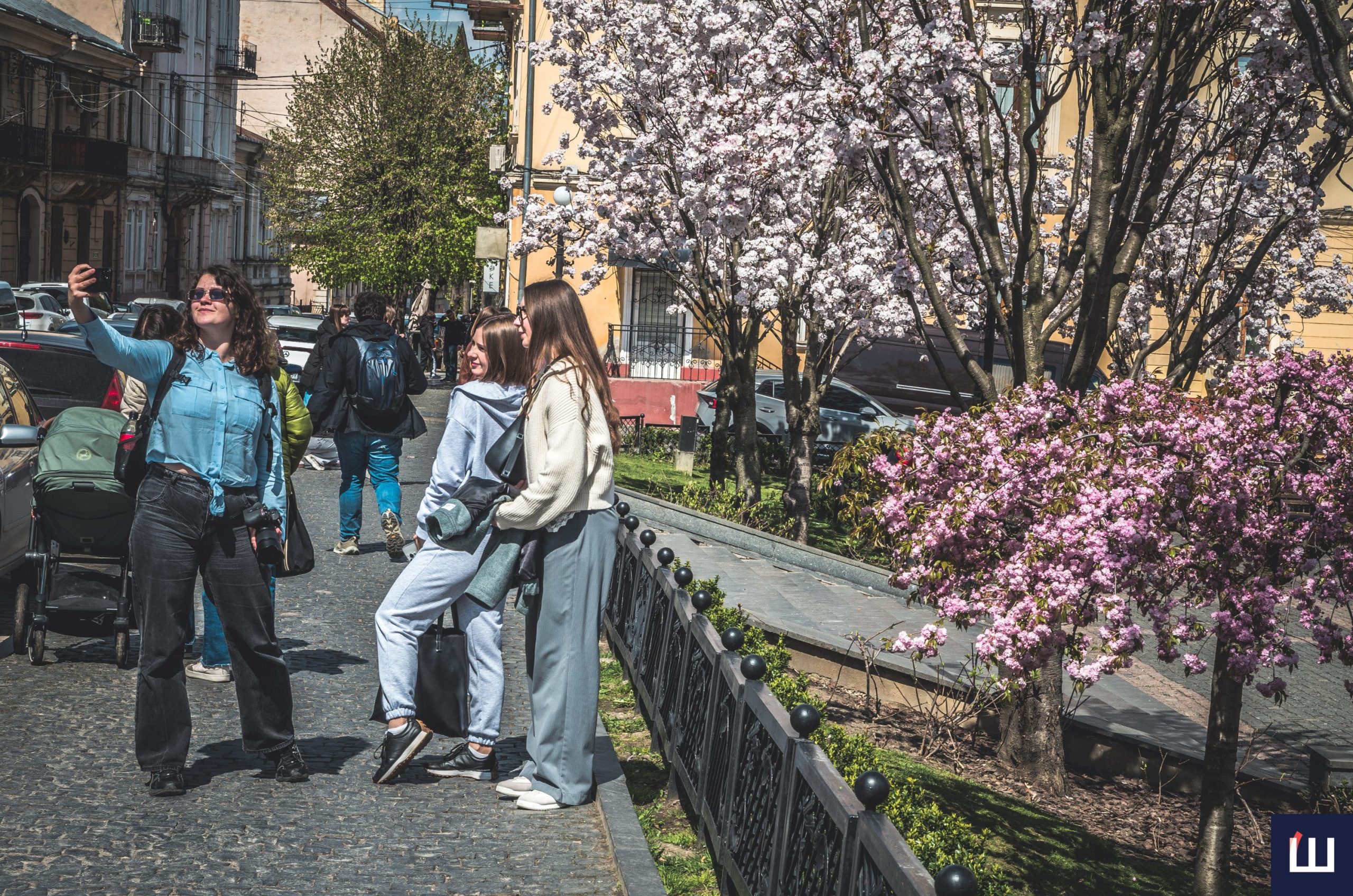 Дерева вкрилися густим цвітом, приваблюючи містян і туристів, які приходять сюди зробити світлини та просто відчути весну.