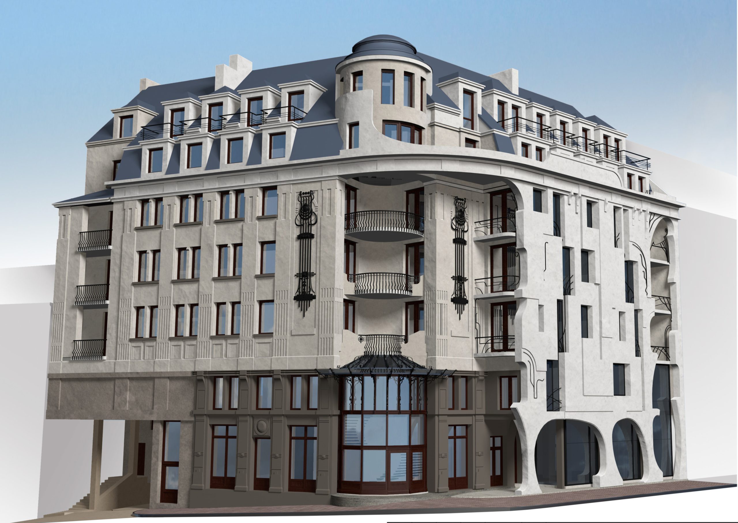 Згідно з техніко-економічними показниками, будівля матиме сім поверхів (два з них — мансардні) і 14 квартир. Передбачений також підземний паркінг.